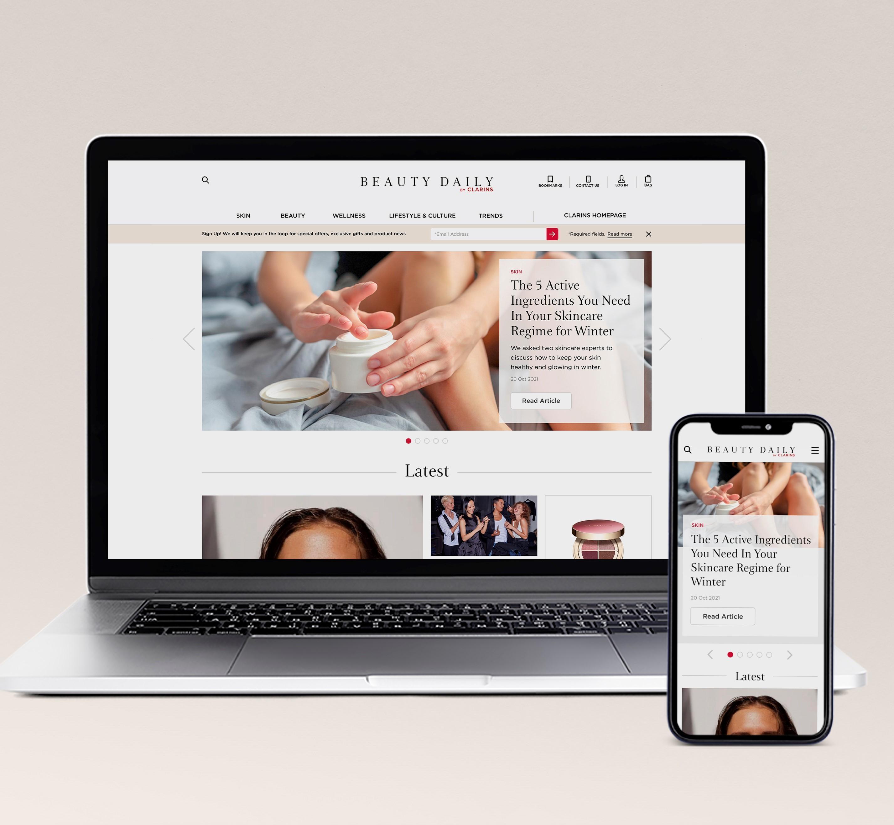 In London, our teams have created an exciting and unique online platform: Beauty Daily. Designed as a blog, the website features advice from Clarins UK experts as well as professionals such as dermatologists, doctors, wellness specialists, and nutritionists. Readers can find answers related to all their skincare, make-up and wellness questions. With this platform, Clarins UK aims to connect with its customers by providing high-quality content that meets their needs.